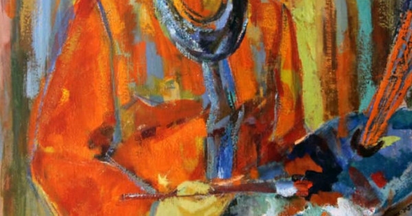 Картинада таңба мен түс басымдыққа ие. Ол қанық ашық түстерді жалпақ, еркін әсерлі жағу арқылы жазған. Артқы план жорамалмен алынған. Суретшінің сұлбасы қызыл және қызыл-сары түстердің көмегімен басым түседі. Сұлбаның жазық шешімі және ұсақ-түйектің болмауы шығарманы мазмұнды әрі тұлғалы етіп тұр.