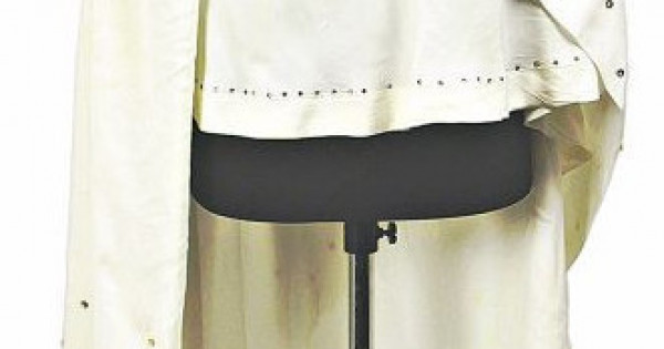 Кимешек ақ түсті. Жалпы тігілу пішіні екі бөліктен тұрады. Бірінші бөлігі – басқа иекті айналдыра киетін жамылғы. Оған қанық сары және ақшыл сары моншақтармен көмкеріліп, әдемі гүл тәріздес өрнектер түскен. Кеудеге түсіп тұратын тұсына әр жерден ақ, жылтыр моншақтар тігілген. Төменгі етегі ішке қарай қайырылған. Екінші бөлігі – түндік. Ақ матаның ішіне қатты қағаз (картон) салып, айналдыра дөңгелене тігілген. Үстінен жартылай қосымша сары түсті мата жүргізілген. Оған жасыл түсті өрнектер араласқан. Жоғарғы жағынан етегіне дейін әр жеріне сары жылтыр моншақтар тігілген.