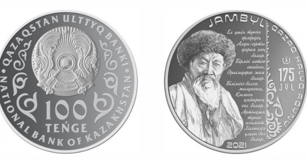 JAMBYL. 175 JYL коллекциялық монеталары МН 25 мельхиор қоспасынан, номиналы 100 теңгелік, массасы 15 грамм, диаметрі 33 мм, дайындау сапасы brilliant uncirculated, таралымы 15 000 дана болып дайындалды.