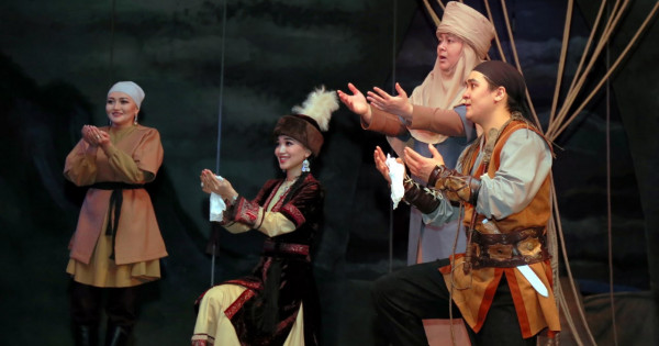 Бұл жолы театр маусымы ерекше басталды. Фойеге киіз үйдің ішкі жабдықтарынан үйлестіріп, фото-зона жасаған. Онда көрермендер шапан, камзол киіп, суретке түсісті. Ал спектакль басталмас бұрын ақ кимешекті әже «алас-алас» деп, қазақы дәстүрмен сахнаны аластап шықты. Бұл-дағы бәле-жала жоламасын деген ниет қой. Сондай-ақ жұмыста жетістіктерге жетіп, белсенділік танытқан қызметкерлер марапатталды.