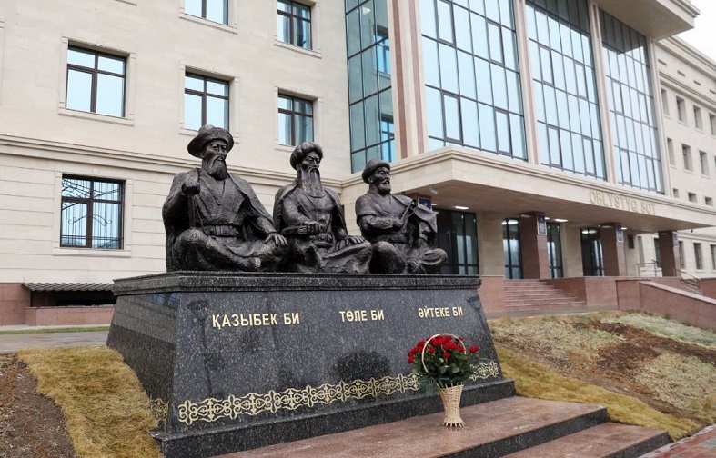 Ел басына ауыртпалық түскен кезеңдерде де ұлттың үш бәйтерегі халыққа қорған бола білді. Ұлы тұлғаларды ұлықтау мақсатында ел Тәуелсіздігінің 30 жылдығына орай, Тараз қаласында үш бидің ескерткіші ашылды. Алып ескерткіш Жамбыл облыстық соты ғимаратының алдында орналасқан.
