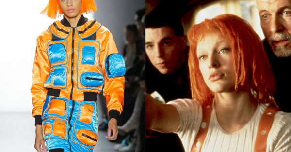 Шынында «Бесінші элементте» киімдер сценарийден немесе әртістік ойыннан кем емес маңызды рөл атқарады. Бұған раушан гүлді жағасы бар көйлек, батыл Корбан Далластың арқа жағында мойын сызығы бар қызғылт сары жейдесі және зұлым Зоргтың ақымақтау әрі қорқынышты шаш үлгісі дәлел. Біз мысалға алған кейіпкерлердің киім киісі 2000-ншы жылдардың басындағы Еуропадағы сән үлгілерінің көшін бастады. Қыз-келіншектерге ақ парик киген стюардессалардың көк түсті формасы қатты ұнады. Бойжеткендер қанша ашық-шашық болса да жаппай солай киіне бастады.
