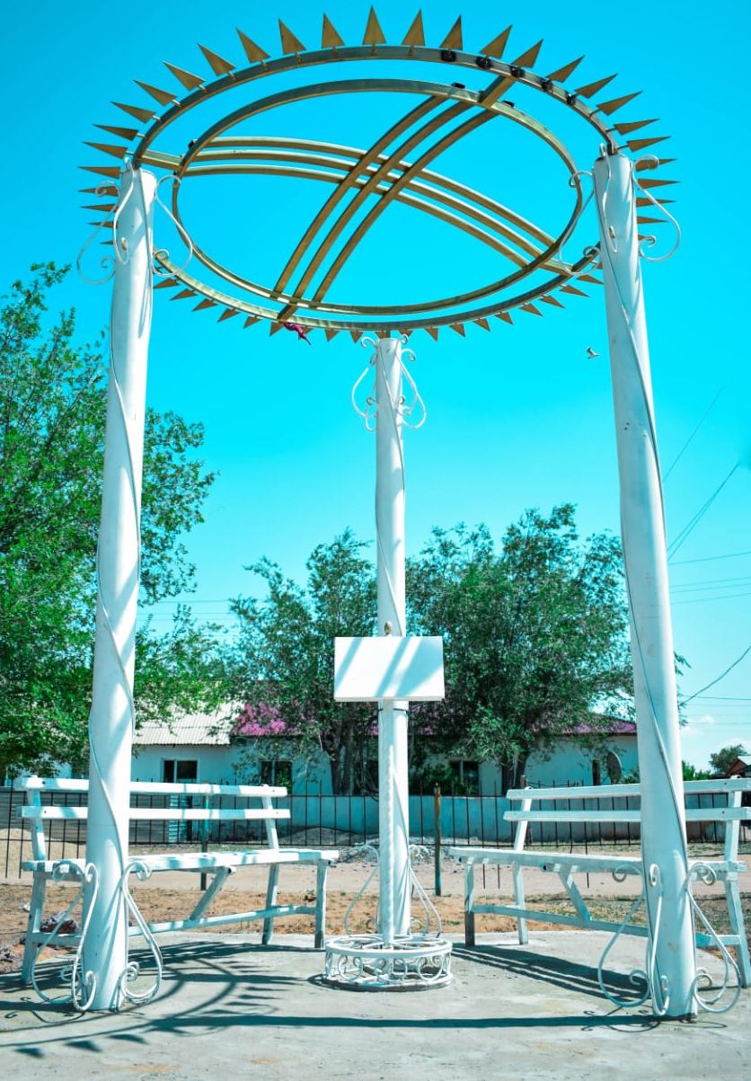 Біз ауылымыздың орталық саябағына биіктігі 5 м, диаметрі 2,5 м болатын тұғыры ақ түс, алтын түсті «Шаңырақ» белгісін орнаттық. Шаңырақ қазақ халқының күнделікті тіршілігінде, мәдени өмірінде ерекше орынға ие болуымен қатар, ұлттық санамызда сан түрлі қырынан танылып, ел рәміздерінің бірі Елтаңбамызда бейнеленген.