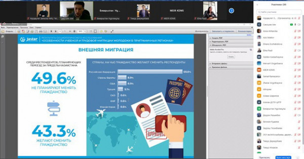 Мәселен, «Жастар» ҒЗО сараптамалық пікіралмасу алаңында орталық мемлекеттік және жергілікті атқарушы органдар, қоғамдық бірлестіктер өкілдерінің, сондай-ақ ғылыми-сарапшылық қоғамдастық өкілдерінің қатысуымен «Жастар арасындағы миграциялық көңіл-күй» тақырыбы бойынша өткен отырыста тараптар жастардың көші-қонын үздіксіз зерделеудің және көші-қонның қозғаушысы болатын негізгі факторларды анықтаудың маңыздылығын сөз етті.