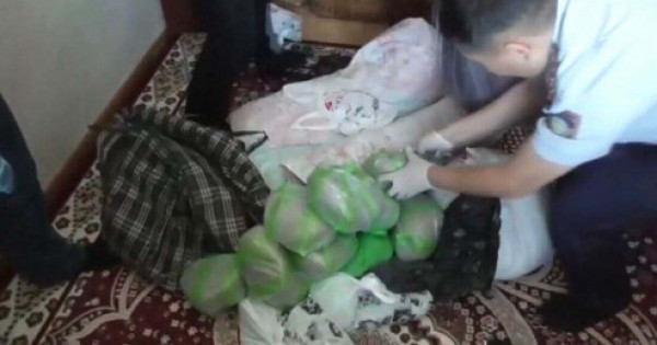 Жеке тінту кезінде күдіктіден аяқ киім қорабына салынған бір келі марихуана тәркіленді. Сондай-ақ, оның пәтерін тінту кезінде балконнан дозаларға бөлек-бөлек салынған екі полиэтилен пакеттегі марихуана табылды. Жатын бөлмеден сол есірткі заты бар екі жол сөмкесі алынды.