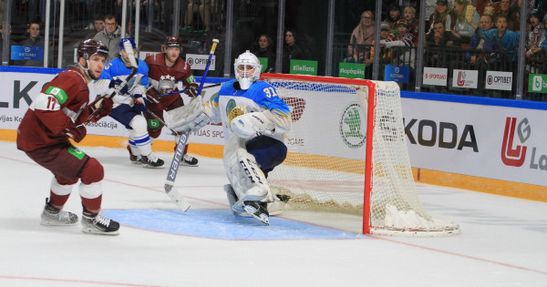 Ригадағы алғашқы матчта мұзайдын иелері Андрей Шутовтың қақпасына жауапсыз бес шайба соқты. Алғашқы кезеңде өте белсенді ойнаған латвиялықтар негізгі шайбаларын дәл осы 20 минуттың ішінде салды. Қорғаныстағы ойыншыларымыздың олқылығының салдарынан бар-жоғы төрт минуттың ішінде қарсыластар қақпамызға үш шайба соғып кетті. 11-минутта Николай Елисеев есепті ашса, арада екі минут өткенде Латвия құрамасы сан басымдығына ие болып, таблодағы көрсеткішті 2:0-ге жеткізді. Шайба авторы – Карлис Кукште. Ал 15-минутта айдын иелері тағы да сан басымдығын тиімді пайдаланып, нәтижесінде Н.Елисеев дубльдің авторы атанды.