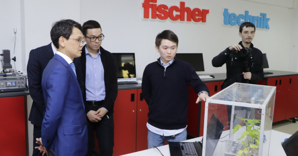 Одан кейін министр Қ.Жұбанов атындағы Ақтөбе өңірлік мемлекеттік университетінің Инновациялық технологиялар паркінде жергілікті ғалымдармен және студенттермен кездесті. Төрт жыл бұрын ашылған осы орталықта «Бағдарламалау негіздері», «IT кабинет», композиттік материалдар зертханасы, «Ағынды деректер талдауы және машиналық оқыту», «Робототехника жүйелері», «3D модельдеу» және «Компьютерлік желілер» зертханалары орналасқан. Есептеу техникасы және бағдарламалық қамтамасыз ету мамандығының студенттері өздері әзірлеген танымдық ойындар жобаларын таныстырды. 4-курс студенттері «Ақылды үй» технологиясы бойынша тұрғын үй өлшемдерін басқарып, бақылау жобасын көрсетті. Осы Smart house жобасы арқылы сенсорлардан мәлімет алып, жарықтандыру мен дабыл жүйесін автоматты түрде де, радио арқылы да басқаруға болады. Сондай-ақ студенттер Информатика және ақпараттық технологиялар ка-