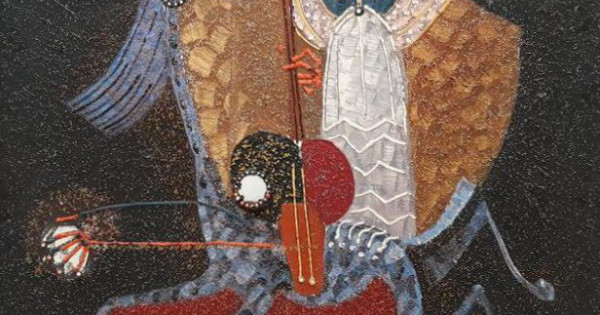 Бақсаңыз, салалы саусақтарынан, алтын түсті нұрлы ішегінен шыққан әуен – өкініш пен қайғы, өмірдің уақытпен ғана өлшенетін қысқа жолы. Ал көкшіл-қара аспан, жылтылдаған ақ түспен түрткен нүктелі дақтар шоқ жұлдыздарды еске түсіретін тұңғиық әлем, яғни – шексіздік, өмірдің жалғасына айналған символ белгі. Қорқыт ата образы – мәңгілік өмірдің кейіпкері. Күрделі композицияның негізгі кілті осы.