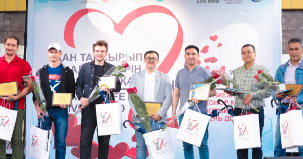 Денсаулық сақтау министрлігінің «Денсаулық сақтау саласына қосқан үлесі үшін» төсбелгісімен 40-тан астам рет қан тапсырған донорлар Ернұр Тәуірбеков пен Азамат Рахметов марапатталды. Донорлыққа көп жыл қатысқаны үшін Самат Ағайсенов Денсаулық сақтау министрлігінің Құрмет грамотасымен марапатталды.