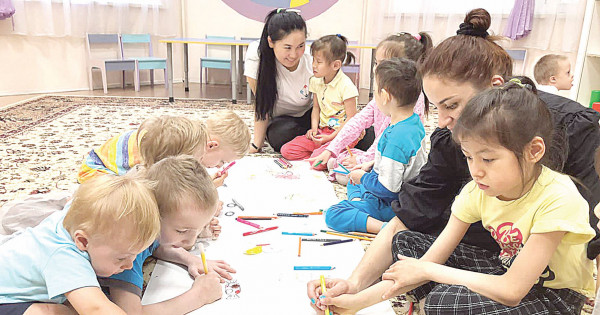 – Осы орталықта 2-2,5 жастан бастап, 18 жасқа дейінгі балалар қабылданады. Ал А.Тоқпанов көшесінің бойындағы филиалда 18 жастан жоғары ересек адамдармен жұмыс жүргізіледі. Бүгінде орталықта 53 бала оңалту шараларымен қамтылып келеді. Сонымен қатар тәрбиешілердің көмекшілері ретінде есту қабілеті бұзылған екінші топтағы мүгедектерді жұмысқа қабылдаймыз. Әрине, ол азаматтардың барлығында жоғары білімі, тиісті дипломы бар. Олардың арасында осы орталықта 6 жыл бойы жұмыс істеп жүргендер де табылады. Ең бастысы, мұндай орталықтарда жұмыс істеуге жай адамдар келмейді. Көбіне-көп, кең пейілді, жүрегі жылы жандар ғана ат басын осында бұрады. Бір қуанарымыз, біз айтып отырған тәрбиешілердің көмекшілері өнер­ден де құралақан емес. Мәселен, сабақ беру кезінде қажет біраз материалды өз қолымызбен жасап шығамыз. Тіпті тігін машинасының да тілін білеміз. Сол кезде көмекшілер сурет сал десең сурет салады, түрлі материалдар әзірлейді. Олардың жұмысы – ұшан теңіз, – деді орталық меңгерушісі.