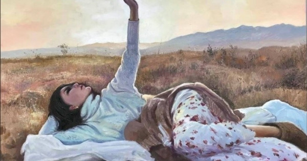 Жалпы, картинада тұрлаусыз тіршіліктен мезі болып, бір күндік демалысын өзіне арнаған ару көрініс тапқан. Яғни тау бөктеріне сейілге шығып, қиялына ерік берген қыз образы суреттелген. Ол сол қолын аспанға созып, самал желдің салқын лебін сезінуде. Арманына қол созған бейкүнә жанның бейнесінде. Қиял әлеміне шомып, кенет өмірінде бір ұлы өзгеріс болатынына үміттенеді.
