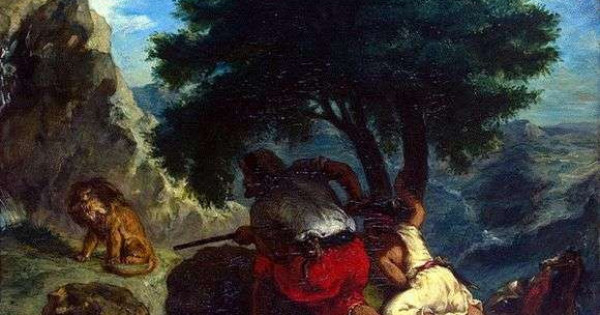Эжен Делакруа картинамен жұмыс істей отырып, 1855 жылы Парижде өткен дүниежүзілік көрмеде ұсынылған «Арыстан аулау» тақырыбын қайта таңдап алады. Сонымен романтизмнің негізін салушы экзотикалық елдерге саяхаттап, академиялық ескі әлем мәдениетінің жаңа жарқын стилі мен ерекше сюжеттерін өмірге әкелді.