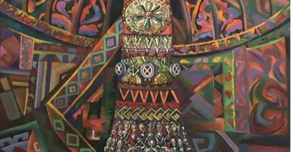 Туындыда қалыңдық мерекелік безендірілген киіз үйде отыр. Алуан түсті өсімдік стиліндегі өрнектер геометриялық өрнектермен араласа отырып, кенеп бетін толтырады да, картинаға мерекелік көңіл күй сыйлайды. Суреттің жоғарғы жағындағы шаңырақтан көгілдір түсті таза аспан көрінеді. Ол көрерменнің назарын әшекейлі сәукеледен жоғары жылжытып, бас киімнің ұшындағы үкіге аудартады.