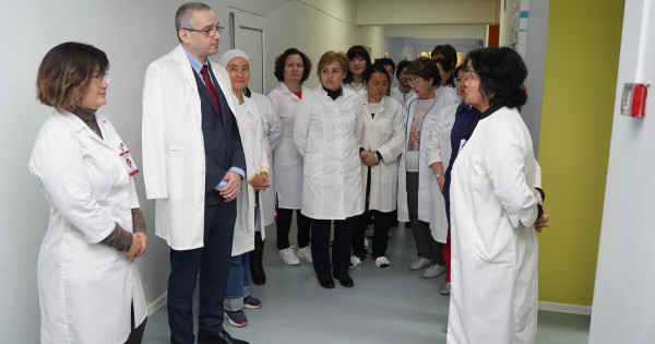 Шеберлік дәрісінен өтуге келген дәрігерлер эндокринология кафедрасының бөлімшесін аралап, күрделі клиникалық жағдайларды талқылады.