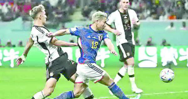 Көп кешікпей Германия мен Жапонияның жігіттері жасыл алаңға шықты. Әдеттегідей «неміс машинасы» допты бірден «меншіктеп» алды. Егер статистикаға жүгінсек, бірінші таймның қорытындысы бойынша допқа иелік ету жағынан олар 80 пайыздық көрсеткішке, яғни айқын басымдыққа ие болды. Және де бірінші голды немістер соқты. 33-минутта Илкай Гюндоган 11 метрлік нүктеден есеп ашты. Иә, негізінде алғашқы допты 8-минутта Жапония құрамасы соққан еді. Алайда ойыннан тыс қалған Дайзен Маэданың бұл голын төреші есепке алмады. Үзілістен кейін жапондар ойын схемасын 4-2-3-1-ден 3-4-3-ке өзгертіп, өздеріне тән жанкештілікпен алға ұмтылды. Иә, бас бапкер Хадзимэ Мориясу бекер тәуекелге бармаған екен. Көп кешікпей олардың бұл тактикасы өз жемісін берді. 75-минутта Рицу Доан және 81-минутта Такума Асано қатарынан екі рет нысананы дәл көздеп, Күншығыс елі өкілдерін алға шығарды. Есеп – 1:2. Сол аралықта Германия құрамасы бірнеше ойыншысын алмастырып, өздерінің тың футболшыларын қатарға қосқанымен, олар да ештеңе өндіре алмады. Таблодағы есеп бәсекенің соңына дейін сақталды. Бұл – биылғы әлемдік доп додасындағы екінші сенсация!