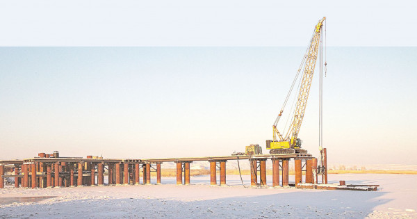 Көпір құрылысына келер болсақ, қазір 21 тіректің 10-ы тұрғызылды. Құрылыс алаңына уақытша жол салу, құрылғыларды орнату секілді жұмыстар аяқталды. Айналма және технологиялық жолдар, электр беру желілері, учаске қызметкерлеріне арналған екі жатақхана салынды, су өткізу құбырлары орнатылды. Уақытша көпір түсті. Биыл тіректерді орнату, кірме жолдарды салу жұмыстары жалғасады. Жолаушылар да сырттай жұмыстың жүріп жатқанын суретке түсіріп, әлеуметтік желіде бөлісіп отыр. Өйткені паром дәл құрылыстың жанымен қатынайды.