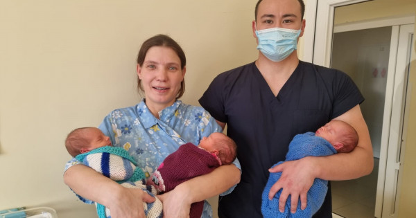 – Бейтаныс ер адам ауруханаға кірген бойда: «Қысылып жатыр. Көмектесіңдер!» деп айқай салды. Бәріміз аңтарылып қалдық. Мәселенің мәнісін түсінісімен, жедел жұмысқа кірістік. Таңғы сағат 6-да екі ұл және бір қыз бала дүние есігін ашты, – дейді Меңдіқара аудандық ауруханасының бас дәрігері Рудава Жакина.
