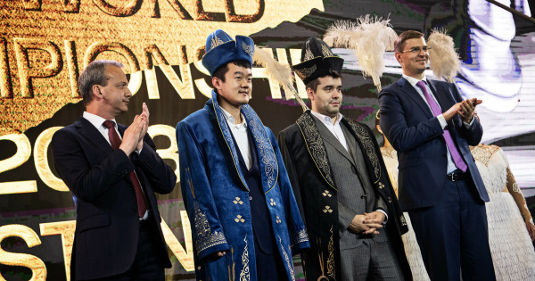 Жарыстың ресми жабылу сал­тана­тында жеңімпазға алтын медаль мен салмағы 4,5 кг болатын көк таспен безен­дірілген кубок берілді. Сонымен қа­тар ұй­ымдастырушылар қаза­қы дәс­түр бойын­ша екі шахмат­шы­ның иығына шапан жапты. Клас­си­калық шахматтан келесі әлем чем­пионаты 2025 жылы ұйым­дас­тырылады.