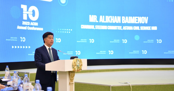 Конференцияда алғаш болып сөз алған Астана мемлекеттік қызмет хабы басқарушы комитетінің төрағасы Әлихан Байменов басында аймақтық деңгейде құрылған хаб қазір жаһандық орталық ретінде танымал екенін атап өтті. Сондай-ақ ол орталықтың бүгінгі жұмысы мен бұл саладағы өзекті мәселелеріне тоқталды.