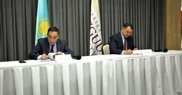 Ынтымақтастық және өзара іс-қимыл туралы меморандумға «Қазақ газеттері» ЖШС бас директоры Дихан Қамзабекұлы және Maqsut Narikbayev University басқарма төрағасы Талғат Нәрікбаев қол қойды.