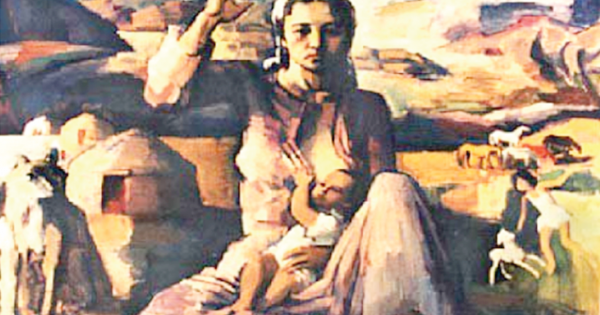 Біз бұл туындының екі түрін тамашаладық. Кескіндеме нұсқасын және майлы бояумен салынған картинасын. Ғажап бір тылсым сыр шертетіндей сезіледі. Аса бір жайлылық, бейқам өмірдің жайдары лебі де, адамзат баласының болашағына жанын төсеген тағдырлы өмірдің жанкешті кейпі де анық байқалады. Және бәрінің бастауында тұрған жас ананың кейпі. Атойсыз, кәдімгідей тіл жетпейтін тыныштық бар жүзінде. Адамзат баласының осы күнге дейінгі барлық жетістігі мен игілігі жолында асыл мұратынан таймаған бейбіт ана тағдырының күнгейі мен көлеңкесі... елес беріп, туынды еріксіз табындырады. Анаға табындырады. Пафоссыз, өзі сұлу, өзі сүйкімді һәм өзі қаралы бейне... Бұл суретті түсіндірудің өзі асылық па деймін, негізі. Баққанға тыныштықтың тілінен артық үн мен құдірет жоқ. Тып-тыныш мүлгіп әрі тербеліп сыр шертіп тұрған суреттің кеңістігін сезінсе болғаны. Еріксіз біртуар суретшінің еңбектерін тамашалауға кірісіп кетесіз.