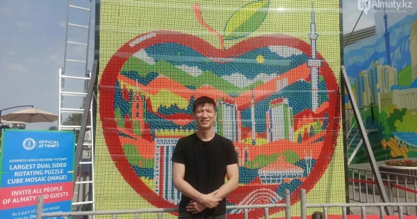 Сиқыршы Алматының туған күніне 5040 рубик кубиктен тұратын алып мозайка құрастырды. Қала күніне арналған қайталанбас композицияда «Қазақстан» қонақүйі бейнеленген.