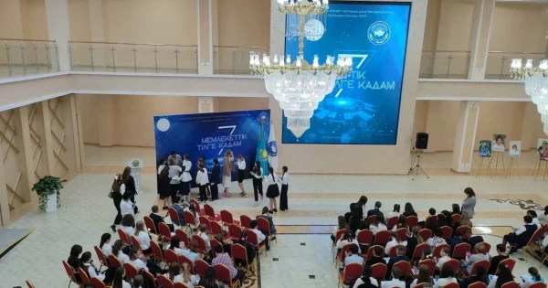 Баланы бастан тіл үйренуге ынталандыратын мұндай ауқымды әрі жарты жылдан аса уақытқа созылған ұзақмерзімді іс-шараның өңірде бірінші рет өтіп отырғанын айта кету керек. 56 ұлттың өкілі қатысқан «Жеті қадамның» жоспар-жосығын облыстағы Қоғамдық келісім мекемесінің басшысы Наталья Рамазанова жасап шыққан. Жоба авторының айтуынша, балалар ұстаздарының жетекшілік етуімен әр кезеңнің тақырыбына сай эссе жазып, ауызекі сөйлеу дағдыларын дамытқан. Мемлекеттік тілде челлендж, туған жер туралы шағын бейнебаян түсіріп, тіл үйрететін арнайы тапсырмаларды орындаған. Бұл орайда жеті ай ішінде кезігетін атаулы мерекелердің де ескерусіз қалмағанын аңғардық. Мысалы, Қазақстан халқының бірлігі күні қарсаңында осы жобаға тартылған мұғалімдер өз мектептерінде «Тіл – ел тірегі» деген тақырыпта сынып сағаттарын өткізсе, маусым айында оқушылар «Ауылым – алтын бесігім» деп аталатын бейнебаян жасаған. Ал шілдеде онлайн режімде өткен жиында әр бала «Мемлекеттік тілдің мәртебесін қалай арттырамын?» деген сауалға ауызша жауап беріп, көпшілік ортада өз ойын еркін жеткізуге талпынған.