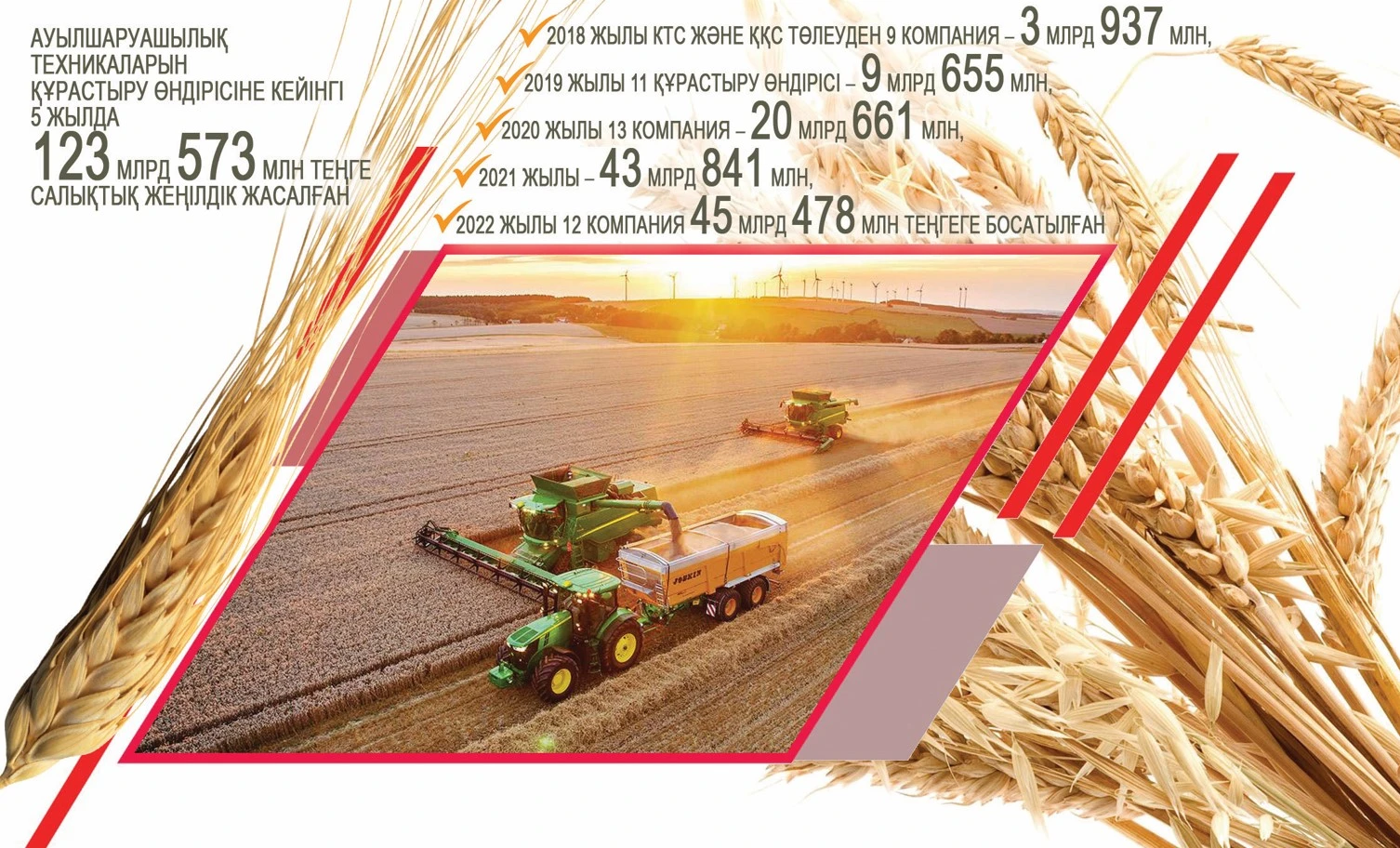 Ауыл шаруашылығындағы екінші қордаланған мәселе – шаруалар қолданысындағы техникалардың басым бөлігі әбден тозған. Бұл туралы Мемлекет басшысы биылғы Жолдауында айтты. Отандық ауылшаруашылық техникаларын құрастыру өндірісіне ел бюджетінен орасан зор қаржы бөлініп жатса да, техникалардың бағасы өте қымбат. Қаржы министрлігінің ақпаратына сәйкес ауылшаруашылық техникаларын құрастыру өндірісіне кейінгі 5 жылда 123 млрд 573 млн теңге салықтық жеңілдік жасалған. Мысалы, 2018 жылы КТС және ҚҚС төлеуден 9 компания – 3 млрд 937 млн, 2019 жылы 11 құрастыру өндірісі – 9 млрд 655 млн, 2020 жылы 13 компания – 20 млрд 661 млн, 2021 жылы – 43 млрд 841 млн, 2022 жылы 12 компания 45 млрд 478 млн теңгеге босатылған. Бұдан бөлек, 2022 жылы отандық техника өндірушілерге Экологиялық кодекстің 388-бабының 3-тармақшасына сәйкес кәдеге жарату алымынан түскен қаражаттан 43 млрд 55 млн теңге берілген. Біз отандық өндірістің дамуына қарсы емеспіз, керісінше қолдаймыз. Себебі олар мыңдаған адамға жұмыс беріп отыр. Алайда жоғарыда айтылған бюджеттік шығындарды 1 жұмыс орнына шақсақ, әр орынға айына 1 млн 376 мың теңге жұмсалады екен. Мұндай өзін-өзі ақтамайтын шығын бізге қаншалықты қажет? Отандық техника өндірушілер кедендік салымнан, қосылған құн салығынан, утилизациялық алымнан босатылған. Бұған қоса, оларға индустриялық аймақтардағы қойма мен өндірістік нысандар, қажетті инфрақұрылымға, атап айтқанда, газ, жарық, су, жолға қосылу тегін. Мемлекет тарапынан жасалған осыншама қолдауға қарамастан, елімізде жиналған ресейлік және беларусьтық техника бүгінде 2 еседен аса қымбаттаған. Бір ғана мысал. 2019 жылы бағасы 43 млн 466 мың теңге болған VECTOR 410KZ комбайнының құны 2022 жылы 93 млн 450 мың теңгеге көтерілген. Ал ACROS 550KZ 2019 жылы 39 925 654 теңгеге саудаланса, 2022 жылы оның бағасы 112 млн 050 мың теңгеге бір-ақ шарықтаған. Осылай жалғастыра беруге болады.