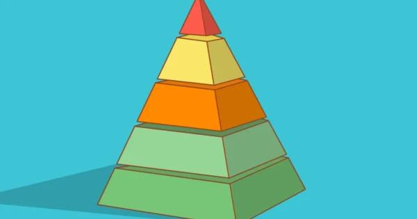 Пирамидада іргесінен жоғары қарай адам баласына ең қажетті дүниелер сатылай орналасады. Егер осылардың керектігінің біреуіне қанағаттанбасақ, онда адамды ішкі ауыр күйзеліс пен рухани, материалдық дағдарыс күтеді. Маслоу пирамиданың бірінші сатысына физиологиялық қажеттіліктерді орналастырады. Оған тыныс алу, ұйқы, тамақ, су, ұрпақ өрбіту секілді табиғи нәрселер жатады. Егер адам осы сатыда өзіне керегін толық алмаса, келесі сатыда жоғалтқан дүниенің орнын барынша толтыруға тырысады. Мәселен, ғайыптан тайып байып кеткен кедей жан бар ақшасын тамаққа шашатын болады.