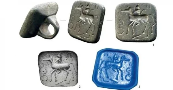 Бұл жаңалық ең әуелі Ресей Ғылым академиясы Материалдық мәдениет тарихы институтының сайтында жарияланды. Осындағы баспасөз мәліметіне қарағанда, жәдігер кездейсоқ жағдайда табылған. Ал мөрге қатысты зерттеу жүргізген мамандар: «Мөрдің табанына салынған жылқы мен шабандоз бейнесі сол дәуірдің әскери қолбасшысы немесе жекелеген батырға тән геральдикалық белгі болуы және мөрдегі жалын тәрізді ирек белгі оның иесінің қуат-күшін әйгілейтін таңба болуы мүмкін», десе, тағы біреулер бұл мөр-таңба Жібек жолы бойымен жылқы жеткізумен айналысатын саудагерге тиесілі кірке (пайза), яғни құқықтық мәртебе беретін құжат дейді.