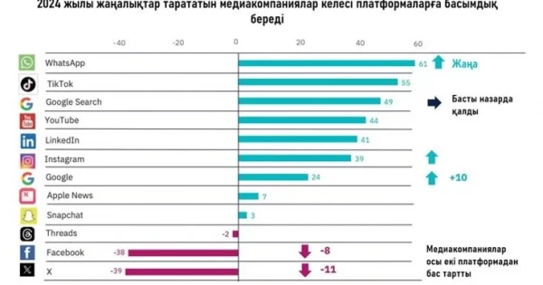 Əлеуметтік желілер мен алгоритм дəуірінде адамның назарына, уақытына талас туындай­тыны сөзсіз. 2024 жылы медиа мамандары үшін басты жаңа­лықтардың бірі «WhatsApp» платформасындағы өзгерістер болуы мүмкін. Себебі «Meta» компаниясы «WhatsApp» пен «Instagram» желілерінде хабар таратудың қосымша арна­ла­рын дамытуды жоспарлап отыр. Бұл ақпарат тарататын сандық платформалар арасын­дағы бәсекелестікті одан әрі кү­шейтетіні анық. Сауалнама нəти­желері көрсеткендей, «TikTok» және «YouTube» сияқты бейне желілерге деген қызығушылық жоғары болып қала бермек.