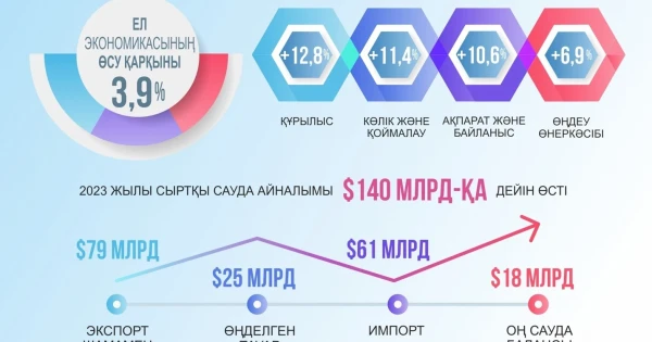 Үкімет басшысының орынбасары – Ұлттық экономика министрі Нұрлан Байбазаровтың сөзіне қарағанда, есепті кезеңде ел экономикасының өсу қарқыны 3,9%-ды құрады. Салалар арасында құрылыс (+12,8%), көлік және қоймалау (+11,4%), ақпарат және байланыс (+10,6%), сондай-ақ өңдеу өнеркәсібі (+6,9%) ең жақсы динамиканы көрсетіп отыр.