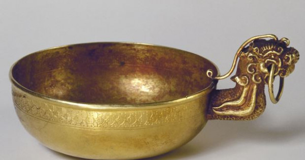 Кітаптағы саптыаяқ туралы анықтамада: «ХІІІ ғасыр. Алтын Орда жәдігері» делініп, әрі қарай, «Саптыаяқ сабындағы ұлу бейнесі Хятан, Алтын немесе Сүн мемлекеттерінің рәмізі болғаны анық, дейтұрғанмен бұл саптыаяқ Жошы ұлысына тиесілі екені даусыз. Бұл ыдыспен ұлыстың билеуші тұлғалары қымыз ішкен» деп жазылыпты.