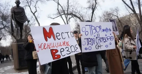 Митингке қатысушылар әйел құқығы мен қоғамдағы орнына қатысты әлеуметтік мәселелерді көтерді.