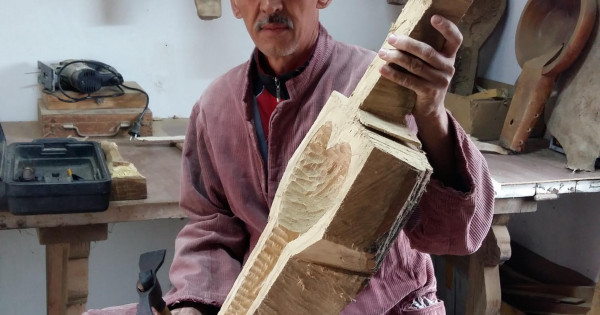 Шебердің шағын бөлмелі шеберханасында ұлттық аспабымыздың әлденеше түрі қаз-қатар ілініп тұрады. Жарым-жартылай істелген жұмысына өзі де бір айрықша махаббатпен қарайтын секілді. Көзқарасынан өзі ісіне деген адалдық пен махаббат айқын көрінеді.