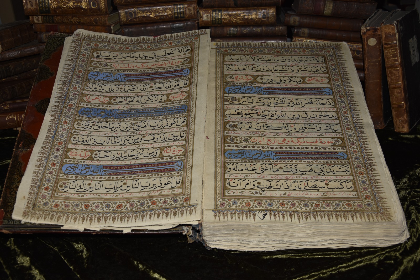 Қытайдың ең сапалы өңделген қағазына жазылған, келесі қор­дағы Құран қолжазбасы ХVIII ғасырға тиесілі. Бұл қолжазбада да 114 сүре толығымен сақталған. Ал сыртқы мұқабасы асқан шебер­лікпен иленген, жас бұзау­д­ың терісімен қапталған. Кітап­қа көптеген бояу түрі пай­даланылған. Қара сиямен жазылған сөздер Құранның негізгі сөйлемдері болса, қызыл бояумен жазылған сөйлемдер – Құранның парсы тіліндегі аудармасы. Кітаптың әрбір бетіне алтын жалатылған. Жа­рық сәулесі түсе қалса, қа­сиетті әріптер көздің жауын ала­ды. ХVIII ғасырға жата­тын кітап­тың алғашқы беті­нен бастап соң­ғы бетіне дейін шығыстық на­қыштағы өрнектермен көр­кем­­­делген. Ол да кітаптың сұлу­лы­ғын айшықтап тұрғандай кө­рінеді. Жалпы алғанда, қазы­на­лы қорымызда 50-ден аса Құран­дар коллекциясы (топтамасы) сақ­таулы.