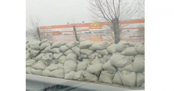 Қапшықтардан құрылған қоршауды жергілікті тұрғындар жасады. Себебі бұл - облыс орталығының жұмыс істеп тұрған жалғыз күре жолы.