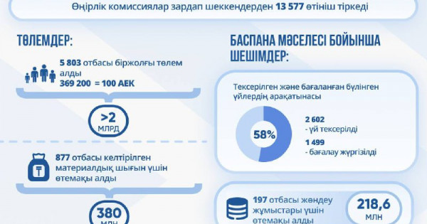 Бүгінде арнайы құрылған өңірлік комиссияларға Ақмола, Ақтөбе, Атырау, Батыс Қазақстан, Қарағанды, Қостанай, Павлодар, Солтүстік Қазақстан, Абай және Ұлытау облыстарының тұрғындарынан 13 577 өтініш келіп түскен.