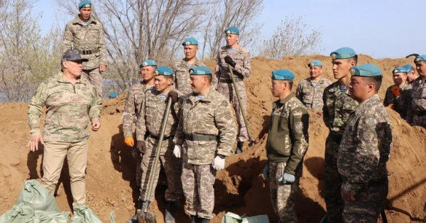 Десанттық-шабуылдау әскерлерінің 300-ден аса әскери қызметшісі Батыс Қазақстан облысының Ақжайық, Теректі, Бәйтерек аудандарында өзен жағалауларын нығайту және бөгеттер салу жұмыстарын жалғастырып жатыр.