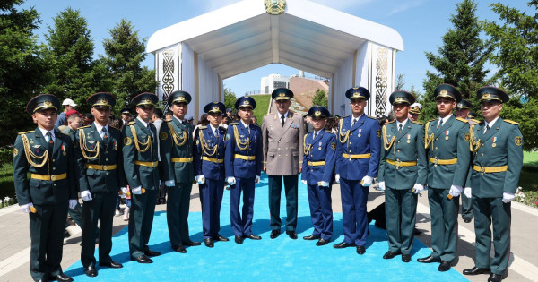 Сағадат Нұрмағамбетов атындағы Құрлық әскерлері әскери институтының түлектері Бауыржан Алпысбаев пен Иманжүсіп Асылбеков, Радиоэлектроника және байланыс әскери-инженерлік институтының түлектері Бекжан Дайырбай мен Диас Омар Президент Қасым-Жомарт Тоқаевтың қолынан офицерлік погондарды алу мүмкіндігіне ие болды.