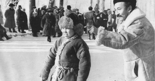 Суретте: Аталған туынды негізінде өмірге келген кинокартинаның түсірілу алаңынан көрініс (оңнан солға қарай: кинорежиссер Абдолла Қарсақпаев, бала Бектас рөлінде ойнаған 4-сынып оқушысы Болат Қалымбетов) 1967 жыл