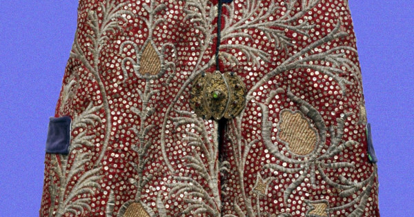 «Тұрмыстағы бай әйелдерге арналған мұндай жеңсіз сырт киімді мықыннан түсетіндей ұзын қылып барқыттан немесе атлас тәрізді қымбат матадан тіккен. Тұмар ретінде ойығын, қамзолдың төменгі қапталы мен етегін жібек немесе металл жіптермен зерлеген. Бұл қамзол қызыл барқыттан тігілген, сыртқы беті алтын жіптермен өсімдік түріндегі өрнектермен зерленіп, жылтырақтармен көмкерілген. Кеуде ойығы мен қалталары көк барқытпен, қамзолдың етегі – алтын оқалы таспамен көмкерілген. Астары мақта-мата кездемеден жасалған», дейді музей маманы Нәзима Оташева.