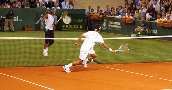 Ерекшелігі сол, ойын алаңы екіге бөлінген. Жартылай шөп, жартылай құм. Мұндағы мақсат не дейсіз ғой? Айтайық. Швейцариялық Роджер Федерер қарсыластарын шөп үстінде шақ келтірмесе, испаниялық Рафаэль Надаль бұрын-соңды құмдауыт жерде жеңіліп көрмеген. Осылайша, ұйымдастырушылар үлкен теннистің үздіктерін бір алаңда тоғыстырып, екеуінен кім мықты екенін анықтағысы келді. Тартысты бәсекеде Р.Надальдің мерейі үстем болды.