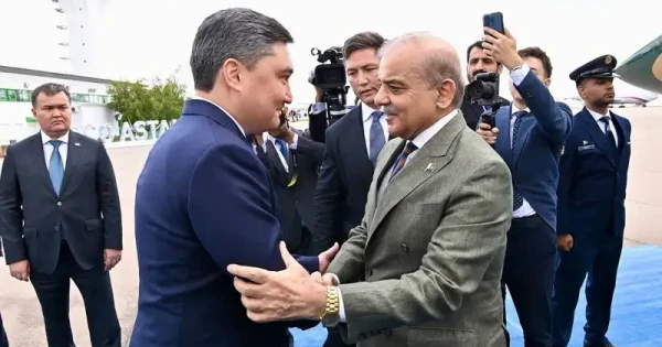 Шахбаз Шарифті Қазақстан Премьер-министрі Олжас Бектенов қарсы алды.