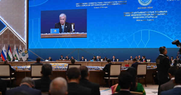 «Қазіргі күрделі ахуал – негізінен халықаралық қатынастар жүйесіндегі дағдарыс салдары. Осы ретте халықаралық құқықтың кемшін тұстарын түзеп, геосаяси тұрғыдан жікке бөлінуге жол бермеу мақсатымен, түптеп келгенде, жаһандық ауқымдағы бейбітшілік пен қауіпсіздікті нығайту үшін ШЫҰ өзінің тұрақтандырушы және жасампаздық рөлін күшейтуге тиіс», деді Президент.