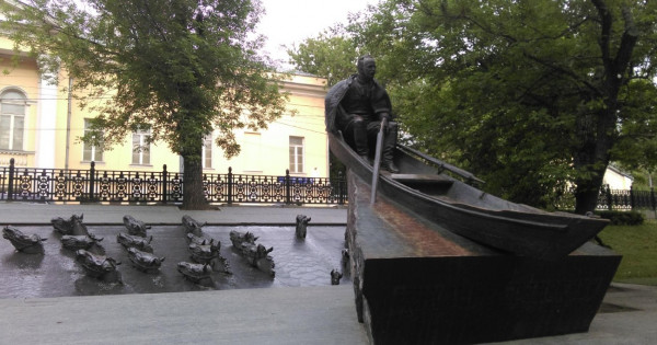 Авторы – Александр Рукавишников. Бұл кісі – екі-үш атасынан бері мүсін өнерін қуған танымал тұлға. Қазір жасы 74-ке қарап тұр. Оның қолынан 70-жылдардан бері талай дүние шыққан. Қысқартып қана айтайық, В.Высоцкий, В.Набоков, В.Татищев, Ю.Никулин, Л.Яшин, М.Магомаев, Ю.Семенов, т.б. ескерткіштері. Ең қызығы, коммунист көсемінен бастап большевик қолынан ажал тапқан діндарларға дейін сомдаған.