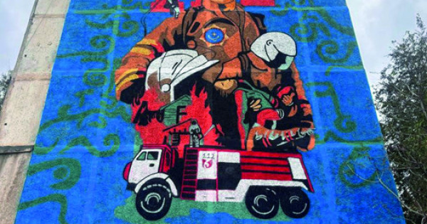 Мұралды Төтенше жағдайлар департаментінің бастамасымен, қала әкімдігінің қолдауымен жергілікті «Korinis wall» компаниясының ұжымы жасады. ТЖМ қаланың орталық көшелерінің бірінде орналасқан бұл бейне қазіргі заман қаһармандарының қызметін насихаттап тұрғанын, оларға деген құрметтің көрінісі екенін атап өтті.