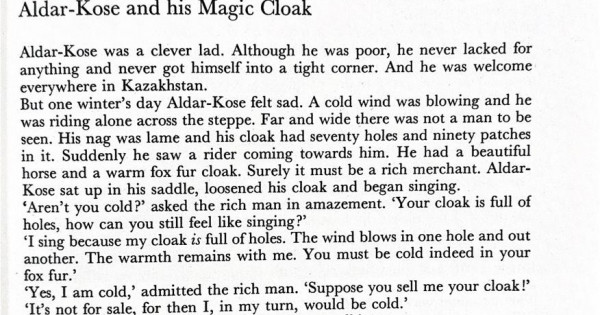 Кітапқа сегізінші ертегі ретінде енген «Алдар көсенің сиқырлы тонымен» бірге келесі бетіне осы ертегінің өзбек халқына тиесілі тағы бір нұсқасы берілген. Авторлар аталған ертегінің Орталық Азиядағы түркі халықтары арасында кең таралғанын ескеріп, оқырмандардың салыстырып оқуына мүмкіндік туғызып, арнаулы түрде қатар кірістіргені де көңілге қонымды. Қалай десек те, осыдан 63 жыл бұрын «Алдар көсе» ертегісінің Америкаға баруы біз үшін қуанарлық жағдай екені рас.