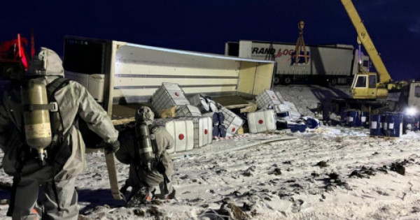 ТЖМ мәліметінше, Бәйтерек ауданында 21 тонна химиялық зат тасымалдап келе жатқан Беларусь Республикасының жүк көлігі жолдан шығып, бір жағына қисайып, құлап кеткен. Салдарынан сұйықтығы бар құтылар аударылған, абырой болғанда, сұйықтық сыртқа төгілмеген.
