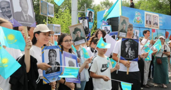 Акцияға қатысушылардың бірі, алматылық тұрғын – Гаухар Жүсіпова, майдангер болған атасының портретін ұстап келіп, оның ерлікке толы өмірі мен отбасы жадындағы тарихымен бөлісті.
